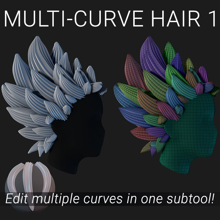 This MULTI-Curve IMM Hair Brush works similar to standard IMM Curve brushes with the added bonus of being able to draw and edit multiple curves in the same subtool.